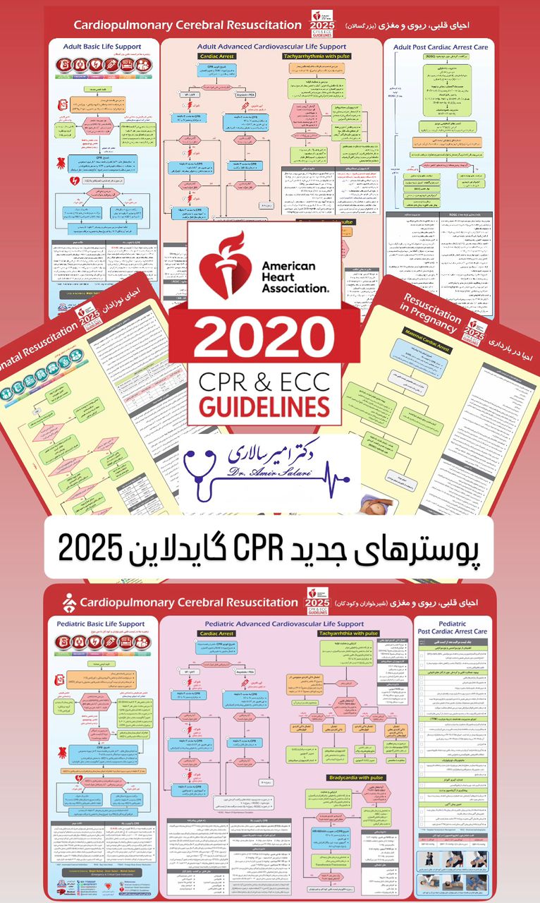 پوسترهای جدید احیای قلبی- ریوی(CPR) در بزرگسالان، کودکان، شیرخواران، نوزادان و زنان باردار بر اساس گایدلاین جدید انجمن قلب آمریکا در سال ۲۰۲۵ با یک طراحی زیبا و کاربردی تهیه و ندوین شده است.